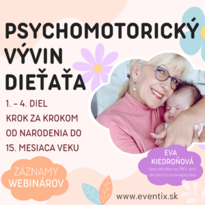 Prinášame vám možnosť sledovania záznamov webinárov so špecialistkou na PSYCHOMOTORICKÝ VÝVIN DETÍ, pani Evou Kiedroňovou.